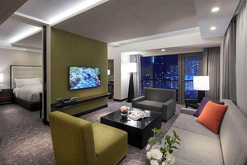 This room is fitted with a seating area and a wall-mounted, flat-screen TV. The room includes free access to the swimming pool and fitness center once a day for 2 adults.